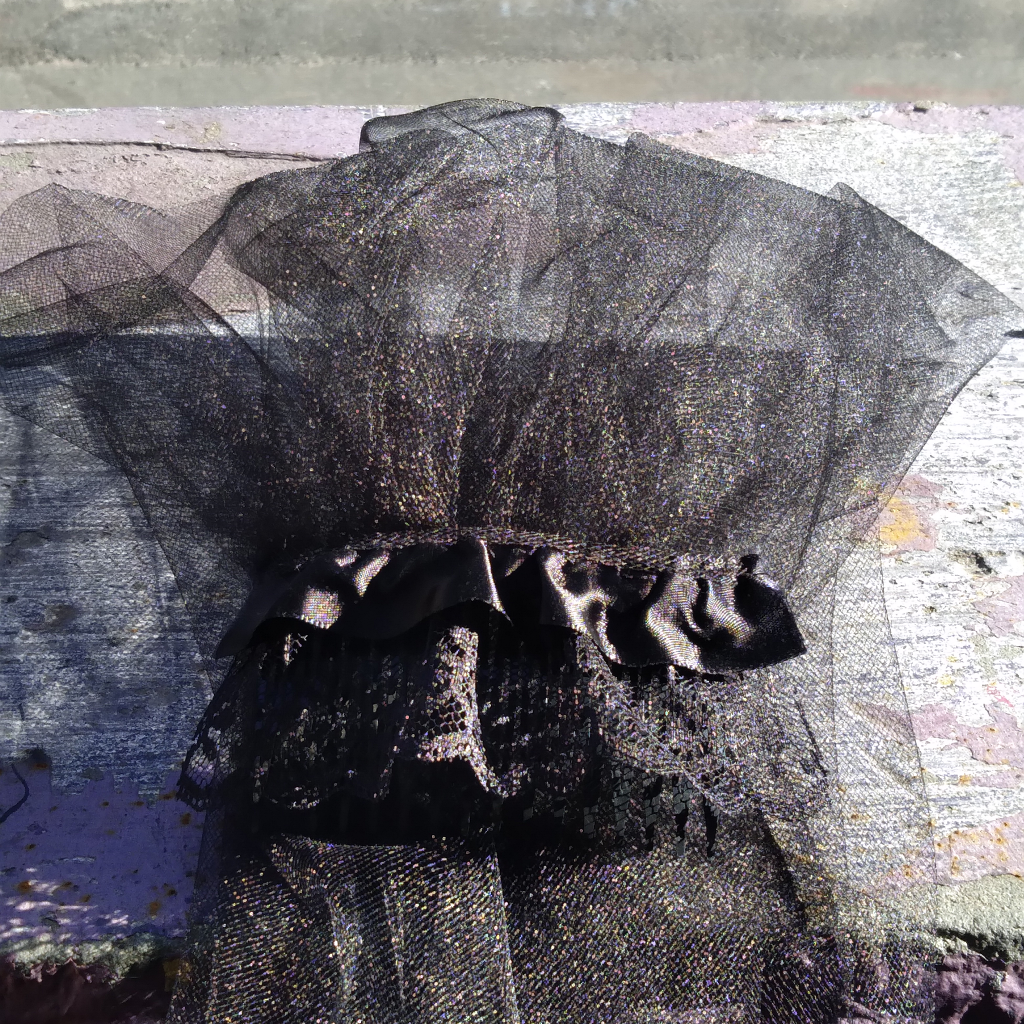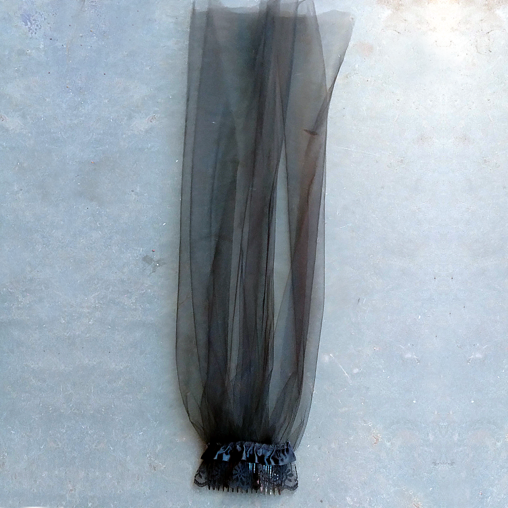 Beautiful 26 inch veil with black clip and lace lining. Hand made to last. The veil fits any outfit. All veils have some variation but made as pictured.