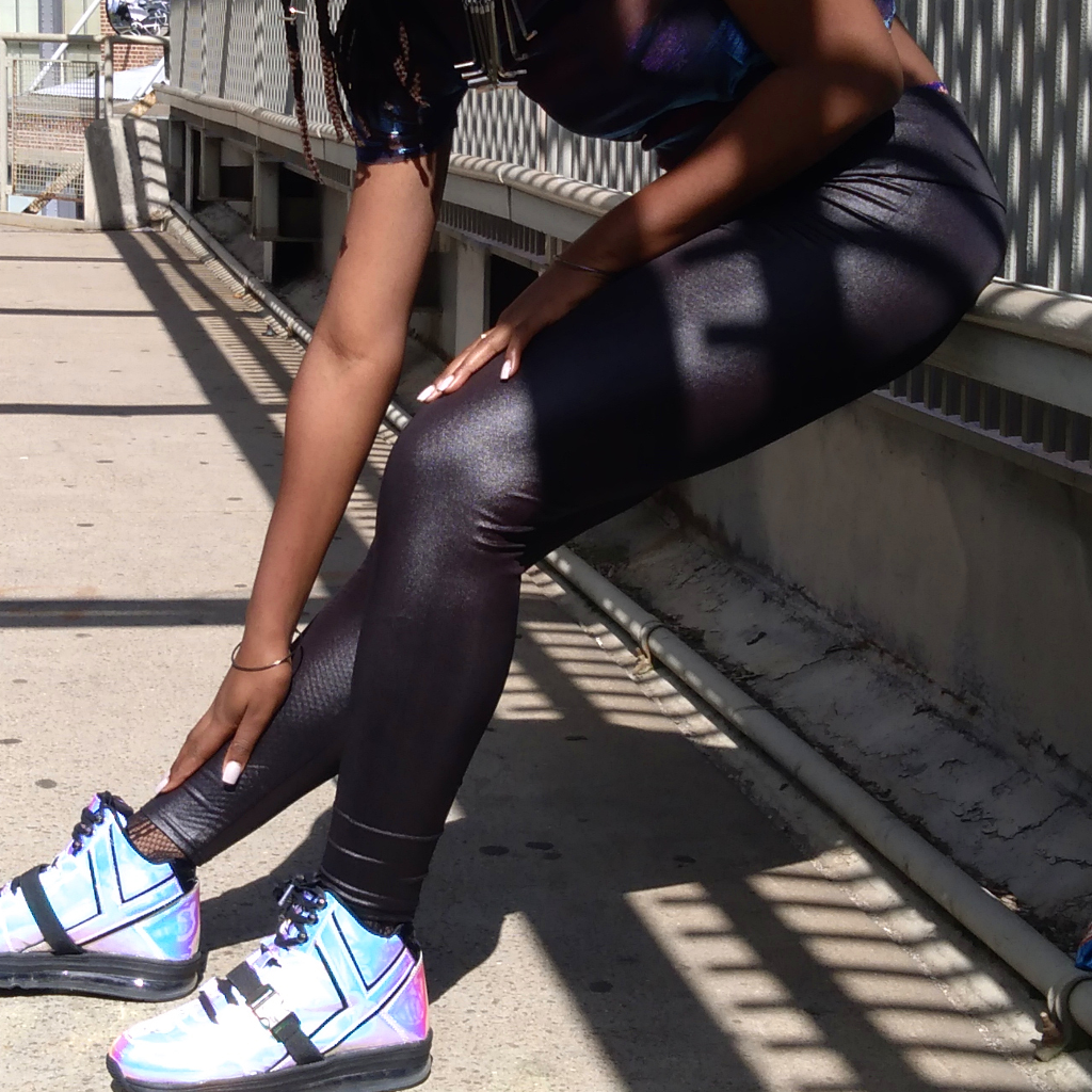 Who let the fox out? Leggings are never out of style or date. Just have to be slick. This fashion black faux leather looking legging perfect for any outfit.