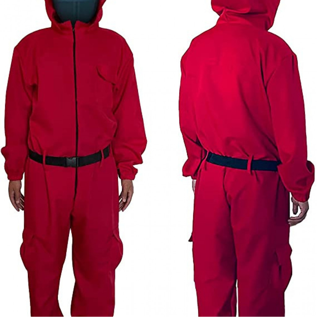 Time to play the game, Squid Game guard is here. The costume includes a jumpsuit, belt and gloves. The material is polyester fibers that feature moisture absorption and ventilation, soft touch, elastic and comfortable, care for your skin. The jumpsuit is made of high-quality polyester which is soft and skin-friendly, lightweight with good shape, no pilling, no fading, not easy to wrinkle, comfy to wear.