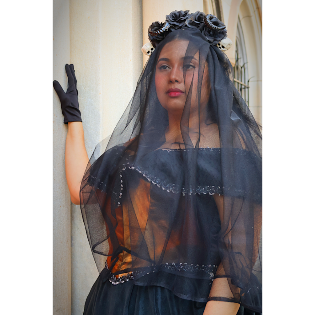 Gorgeous handmade Gothic veil with with skulls and horns. Keep a watchful eye of your kindred. Wear it with the veil covering the face for a mystical touch. Great for dark, Gothic or eloquent outfit. Headpiece comes with two variations. Each piece handcrafted and unique.