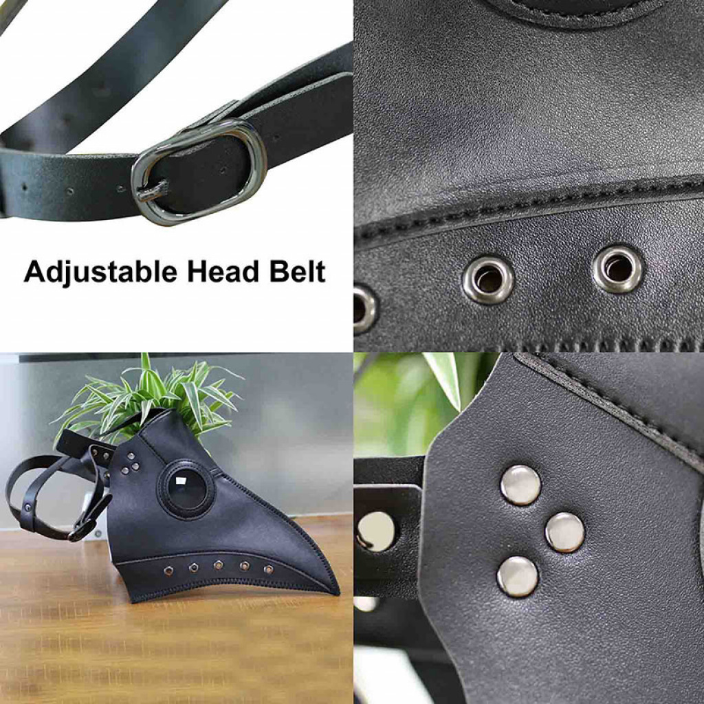 Beautiful plague doctor halloween mask made with pu leather. The mask features a medieval long beak with adjustable head belt and air holes for breathing. Dark tinted eye holes.